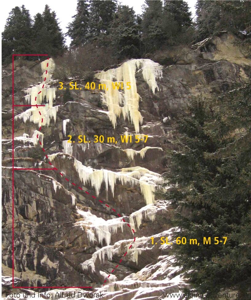 Durch die Ortschaft Scheibrand gehen und anschließend recht durch den Wald zum Eisfall hinauf.