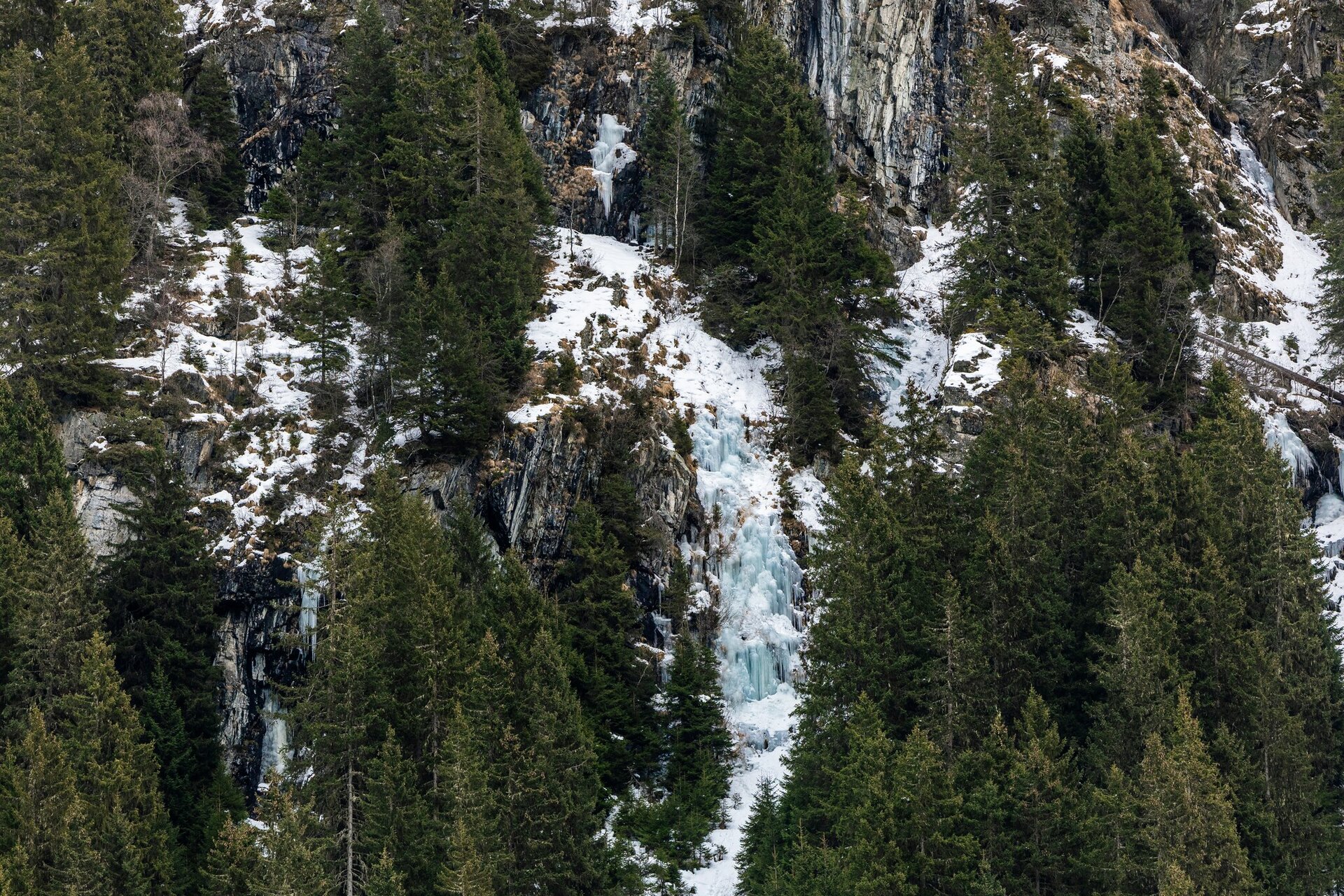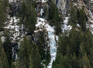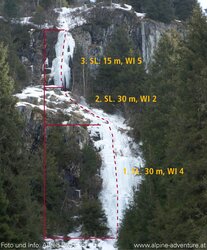 Über den Eisfall an Bäumen und mittels Eis Uhren abseilen.