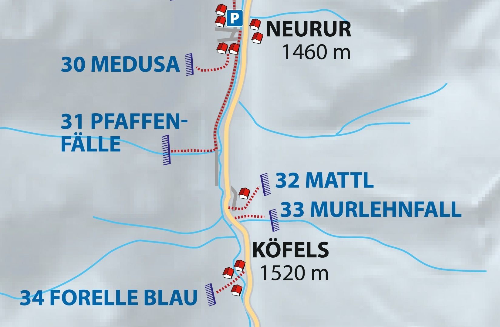 Von Trenkwald gelangt man über den Forstweg zu einer Waldschneise. Von dort sieht man den Wasserfall, zu dem man direkt aufsteigt.