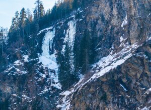 At the exit of the left icefall, walk up diagonally to the left through the forest to the hamlet Rehwald. Then along the forest road, one hairpin down until you reach a path on the left which leads back to the parking area.
