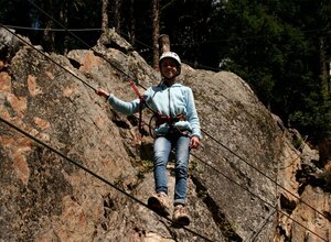 Verschiedenen Kletterrouten, Klettersteigen, einer Seilbrücke und einem Flying-Fox - Die Anlage ist ideal zum trainieren und bietet auch Kindern riesiges Vergnügen. Ob klettern am Fels, überqueren der Seilbrücke, abseilen über steile Felsen oder auf dem Flying Fox durch den Wald schweben, hier ist für jeden etwas dabei. Unsere geschulten Guides bieten Ihnen unvergessliche Stunden in luftiger Höhe.