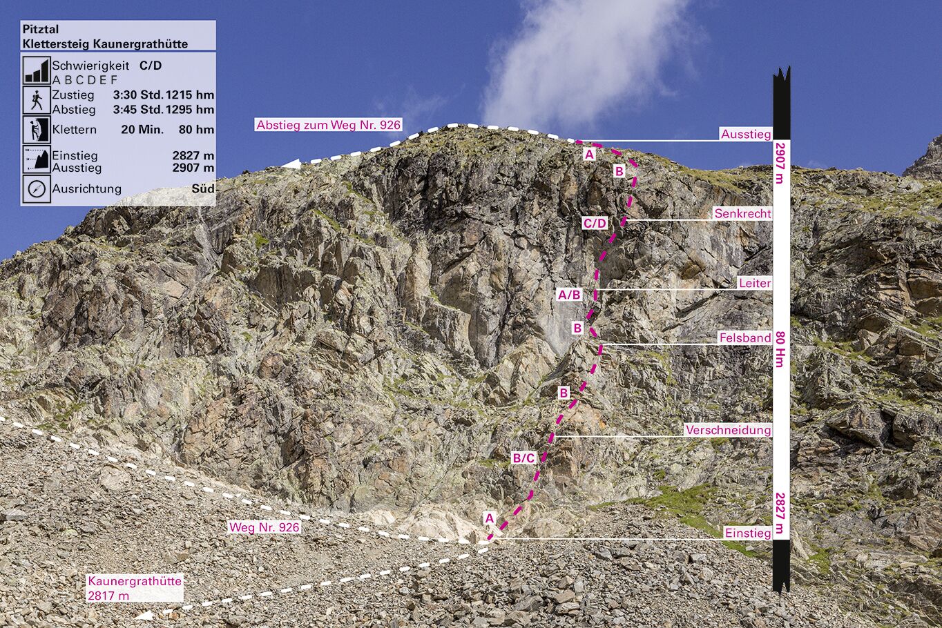 Der Klettersteig ist von der Kaunergrathütte in ca. 5 Minuten zu erreichen.