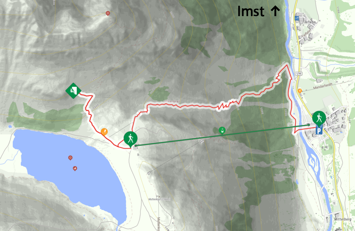 Von der Autobahnausfahrt A12 „IMST – Pitztal“ folgen Sie dem Straßenverlauf Richtung Pitztaler Gletscher für ungefähr 45 Minuten. In Mandarfen (1 km vor dem Pitztaler Gletscher) können Sie Ihr Auto nördlich der Rifflseebahn parken.
