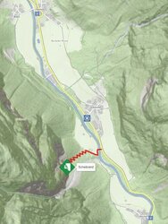 Ca. 100 m nach dem Weiler Scheibrand befindet sich auf der rechten Seite eine Brücke. In diesem Bereich gibt es Parkmöglichkeiten.
