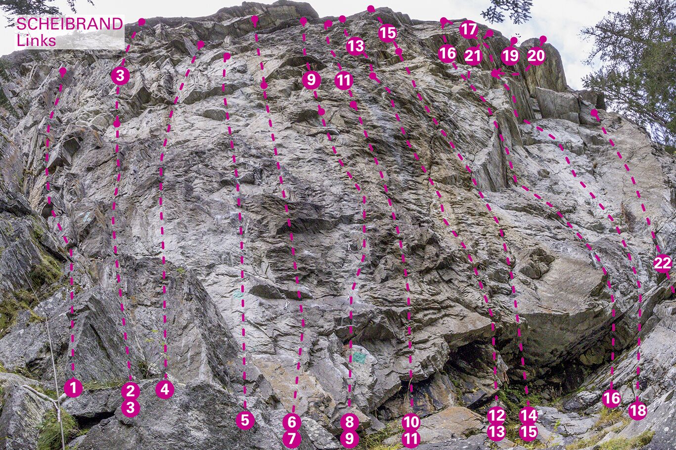 21 Routen in der Schwierigkeit von 6a bis 8c