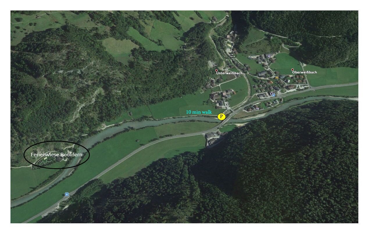 Von Lofer nach Weißbach, nach der Brücke (Ortseinfahrt) links abbiegen und gleich wieder rechts auf den Parkplatz.