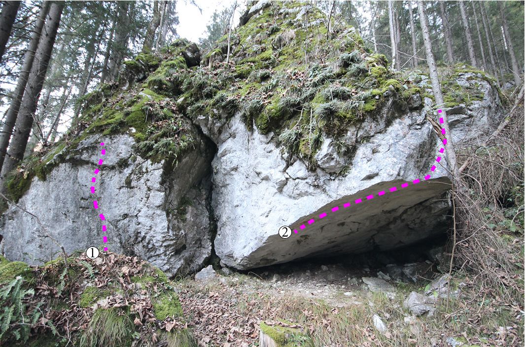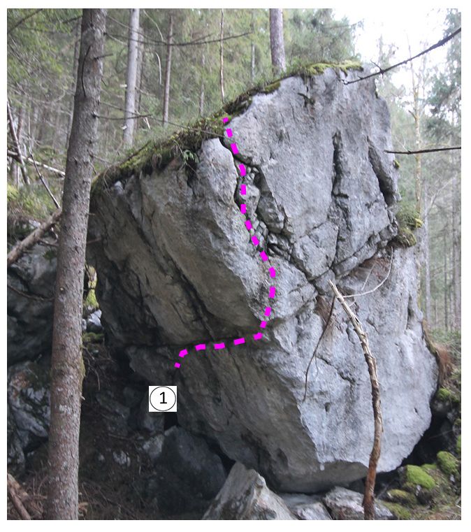 Vom Parkplatz/Logenplatz "Schusterbichl" geht man noch etwa 20 Meter die Hirschbichlstraße bergauf und biegt rechts beim gelben Hinweisschild in den Wald ein. Links halten, dort findet ihr gleich die ersten Blöcke.