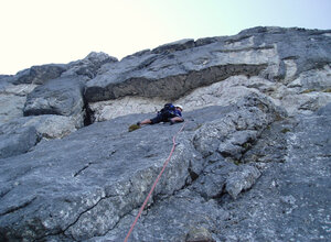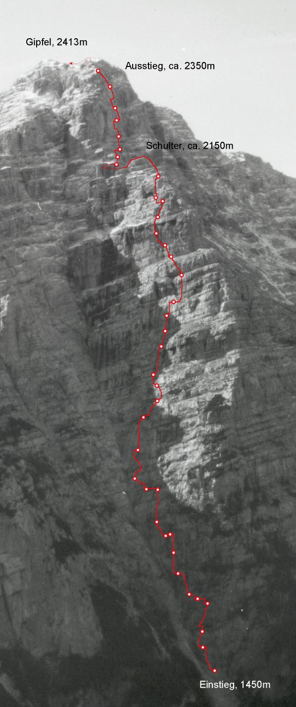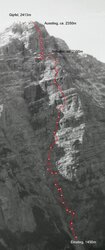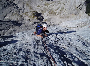 Die Route ist etwas gesucht - aber sie wurde gefunden. Mit über 150 Begehungen in den letzten Jahren ist sie sicherlich die am meisten begangene Kletterroute in den Loferer Steinbergen.