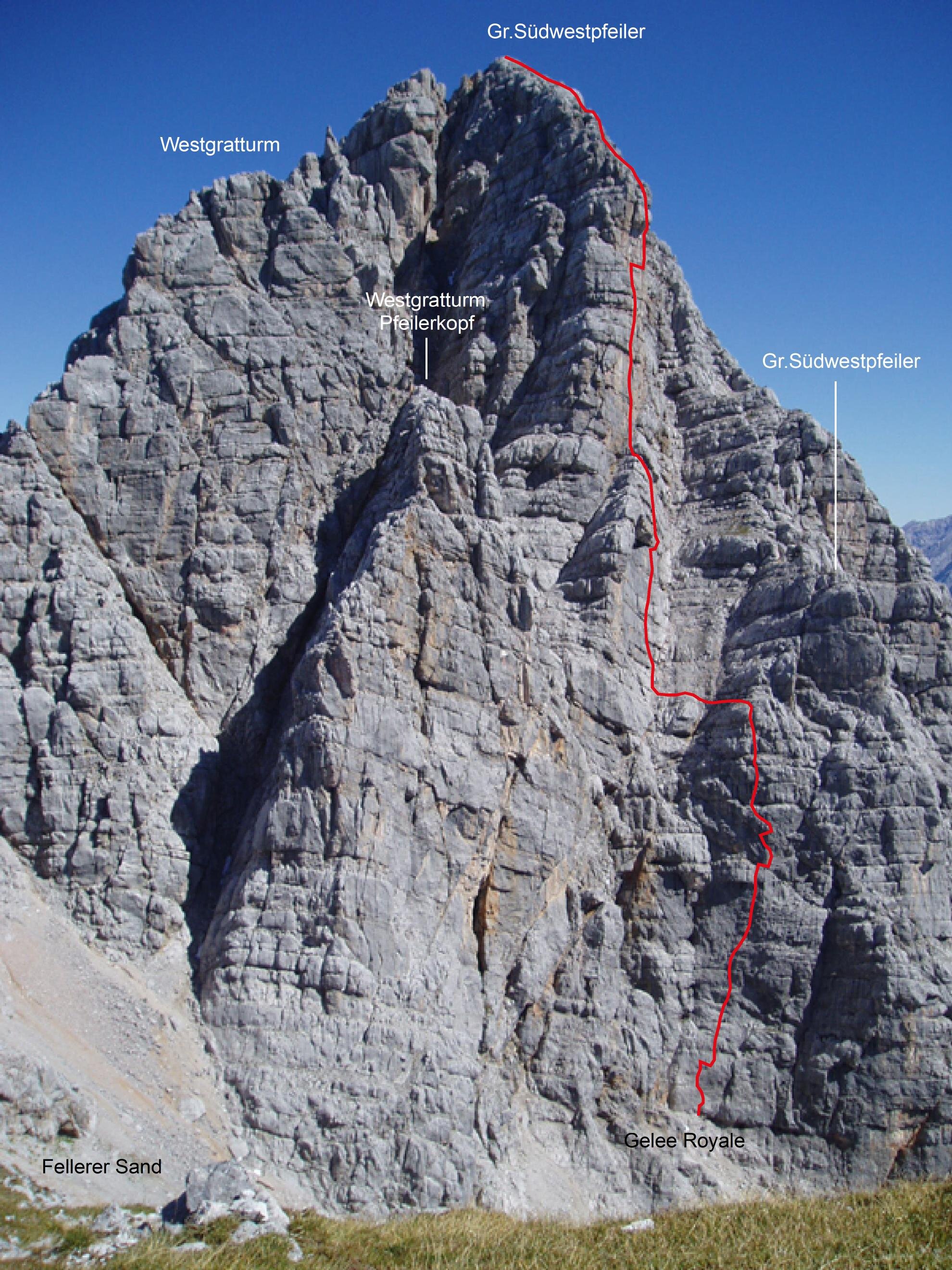 Steiler, in zwei Teilen nach Südwesten in den Fellerer Sand abfallender Pfeiler. Alpines Ambiente. Die Kletterei an allen Routen besticht durch seine Felsqualität, seine homogenen Schwierigkeiten und durch seine Steilheit!