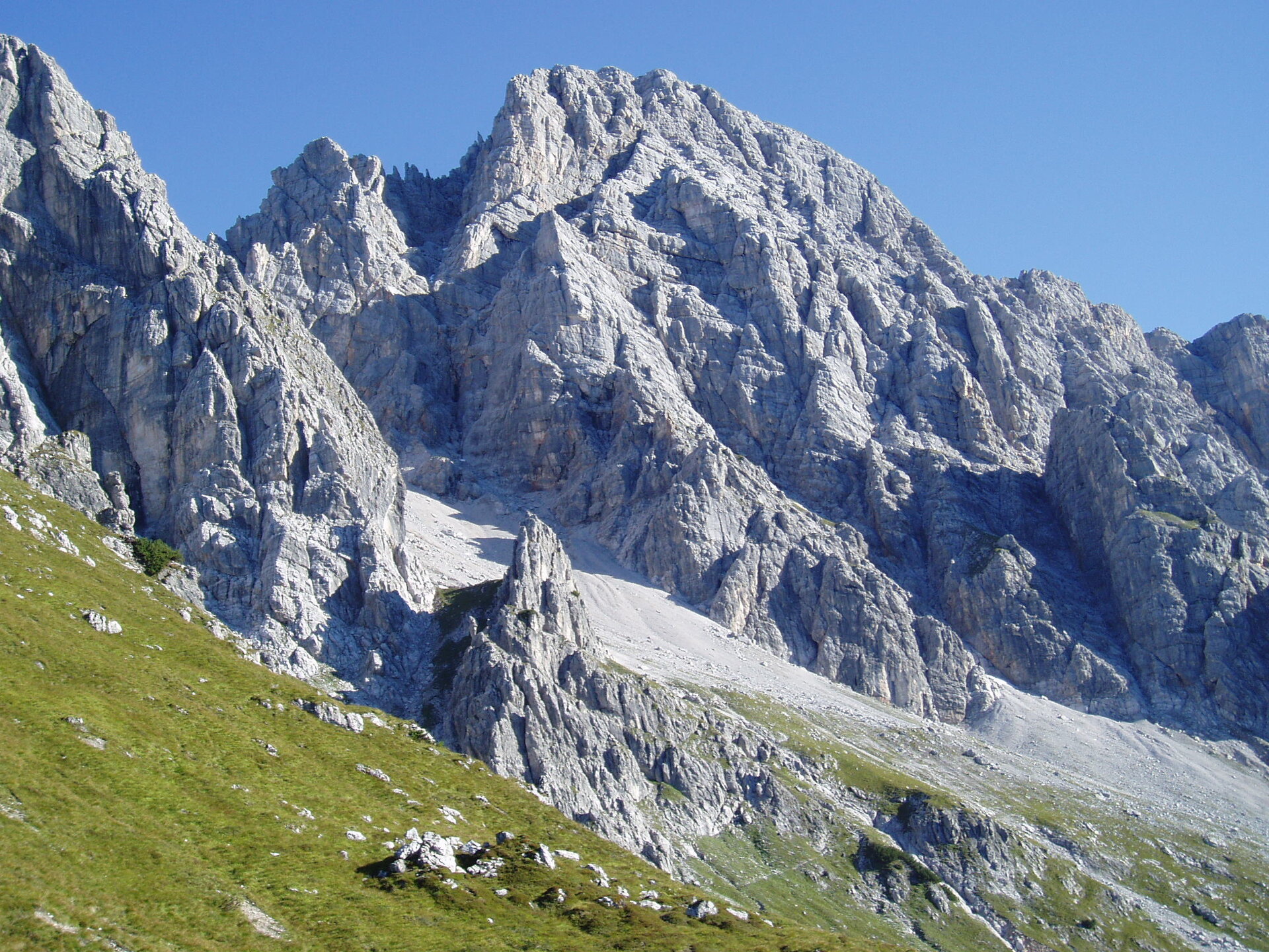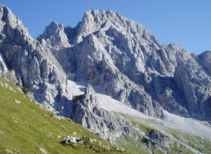 a) Über den Gipfel und Normalweg nach Nordwesten absteigen und über das Rotschartl wieder zurück zum Einstieg (ca 1 1/2 Stunden.