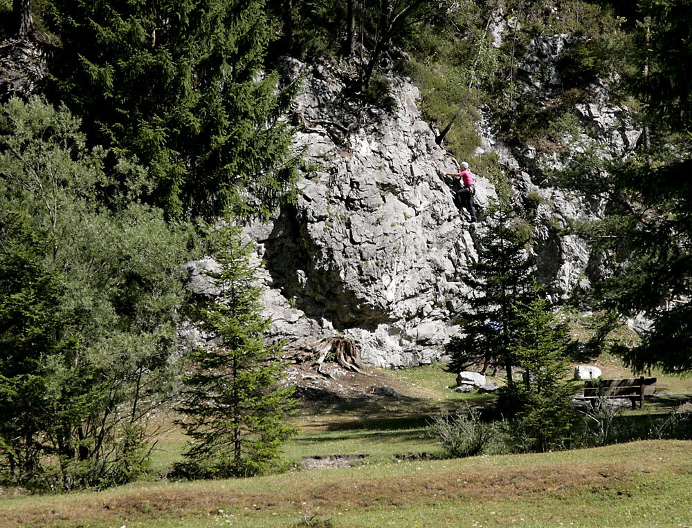 Herrliches Platzerl an der Strasse von St.Ulrich am Pillersee nach Hochfilzen. Dieser kleine ca 8m hohe Felsen eignet sich ideal für unsere "kleinsten" zukünftigen Kletterstars um ihre ersten Meter in richtigem Fels zu klettern. Der Felsen ist zum Toprope klettern eingerichtet. Die möglichen Schwierigkeiten bewegen sich zwischen 3 und 5. Das idyllische Ambiente legt einen Familienausflug nahe.