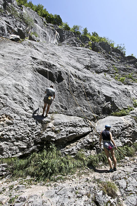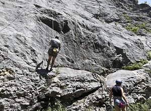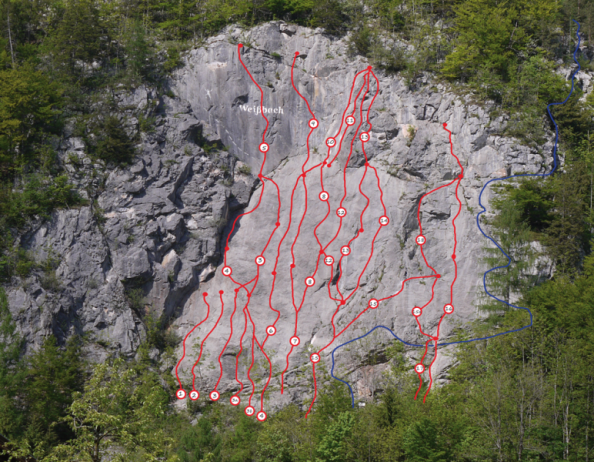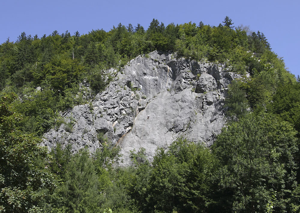Die Weißbacher Platte ist ein Klassiker unter den österreichischen Klettergärten. Die bunten Linien, die einst die Routen schon von weitem sichtbar machten, sind in der Zwischenzeit abgewaschen und verblasst. Dafür lockt der Klettergarten mit moderner, wenn auch manchmal etwas weiterer Absicherung. Die Plattenkletterei ist höchst genussvoll für denjenigen, der mit den Kletterpatschen an seinen Füßen umzugehen und sie einzusetzen versteht. Die Routen im oberen Bereich der Plattenwand verlangen dann auch eine gehörige Portion Athletik und Fingerkraft. Und bieten den Nervenkitzel höchster Ausgesetzheit.
