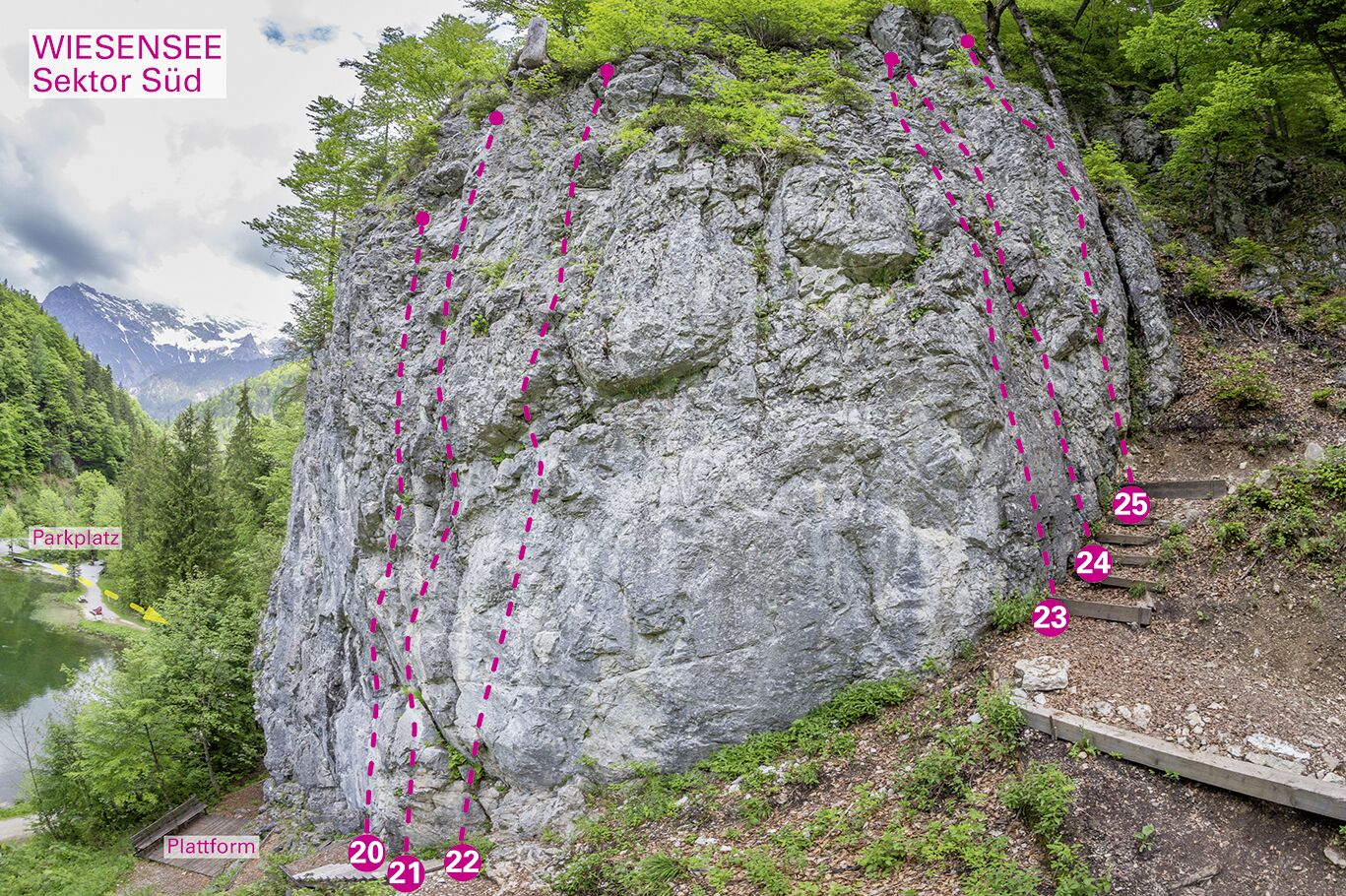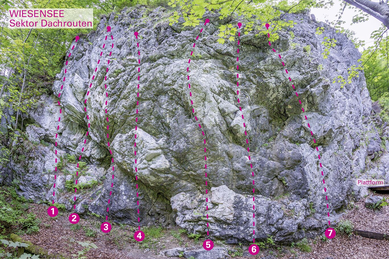 Idyllisch gelegener Flecken zwischen St. Ulrich und Hochfilzen am kleinen Wiesensee. Der Klettergarten wurde vom AV Hochfilzen kindergerecht eingerichtet und vorbildlich geputzt. Vor allem der Kletterer in den unteren Schwierigkeitsgraden und Kletter"familien" dürften sich hier wohlfühlen.