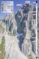 erfolgt der Abstieg über den markierten Normalweg (teils drahtseilgesichert,