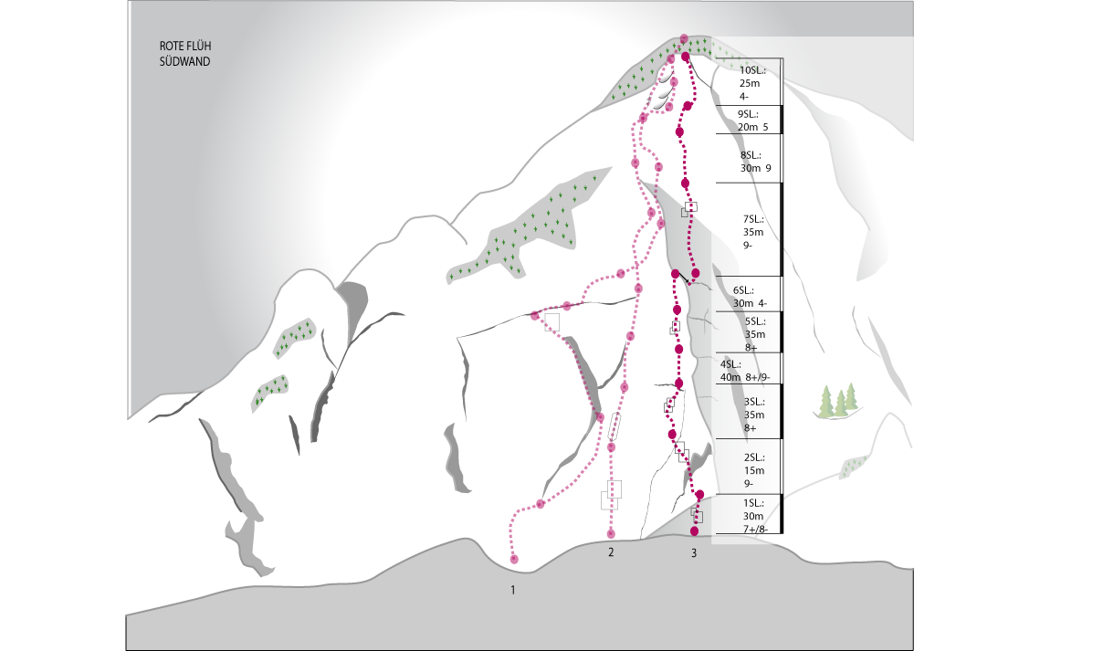 Es handelt sich um Erhebungen des Ostgrates der Roten Flüh, bergsteigerisch weniger beteutend , bei Kletterern jedoch sehr beliebt , besonders auch im Winter. Durch die Vielzahl der Routen und Varianten, welche sich oftmals kreuzen und teilweise identisch sind, ist leider inzwischen ein etwas verwirrendes Linienbild entstanden.