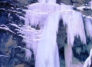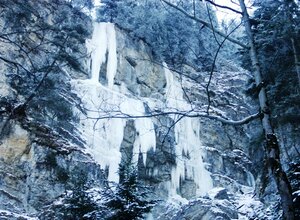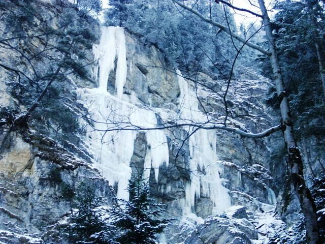 Etwas versteckt rechts oberhalb der Straße von Ehrwald nach Garmisch. Die linke Route führt meist über eine frei stehende Säule - echt gewaltig wenn die Verhältnisse passen.