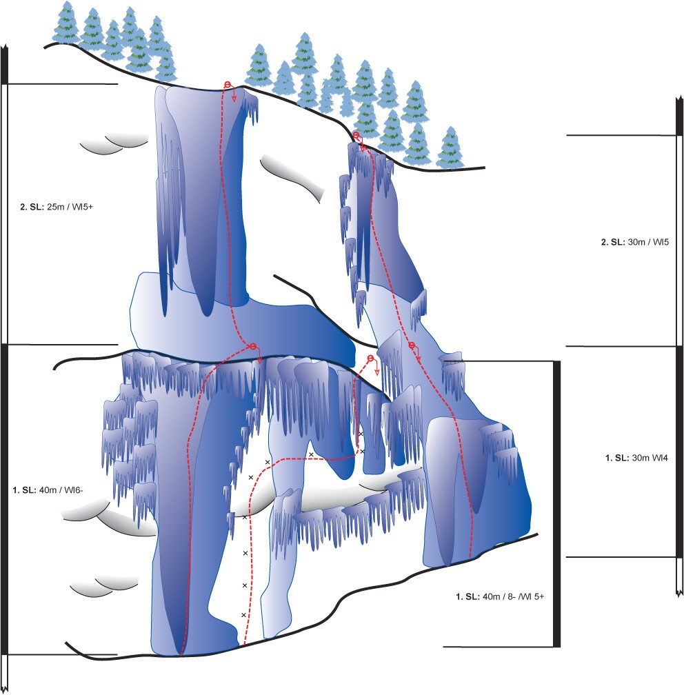 Der Icewelli ist eigentlich die Mixed-Route. Welli ist umgangssprachlich ein Ausdruck für einen alkoholisierten Zustand, in welchen wir uns befanden, als wir diese Route einbohrten und erstbegangen haben.