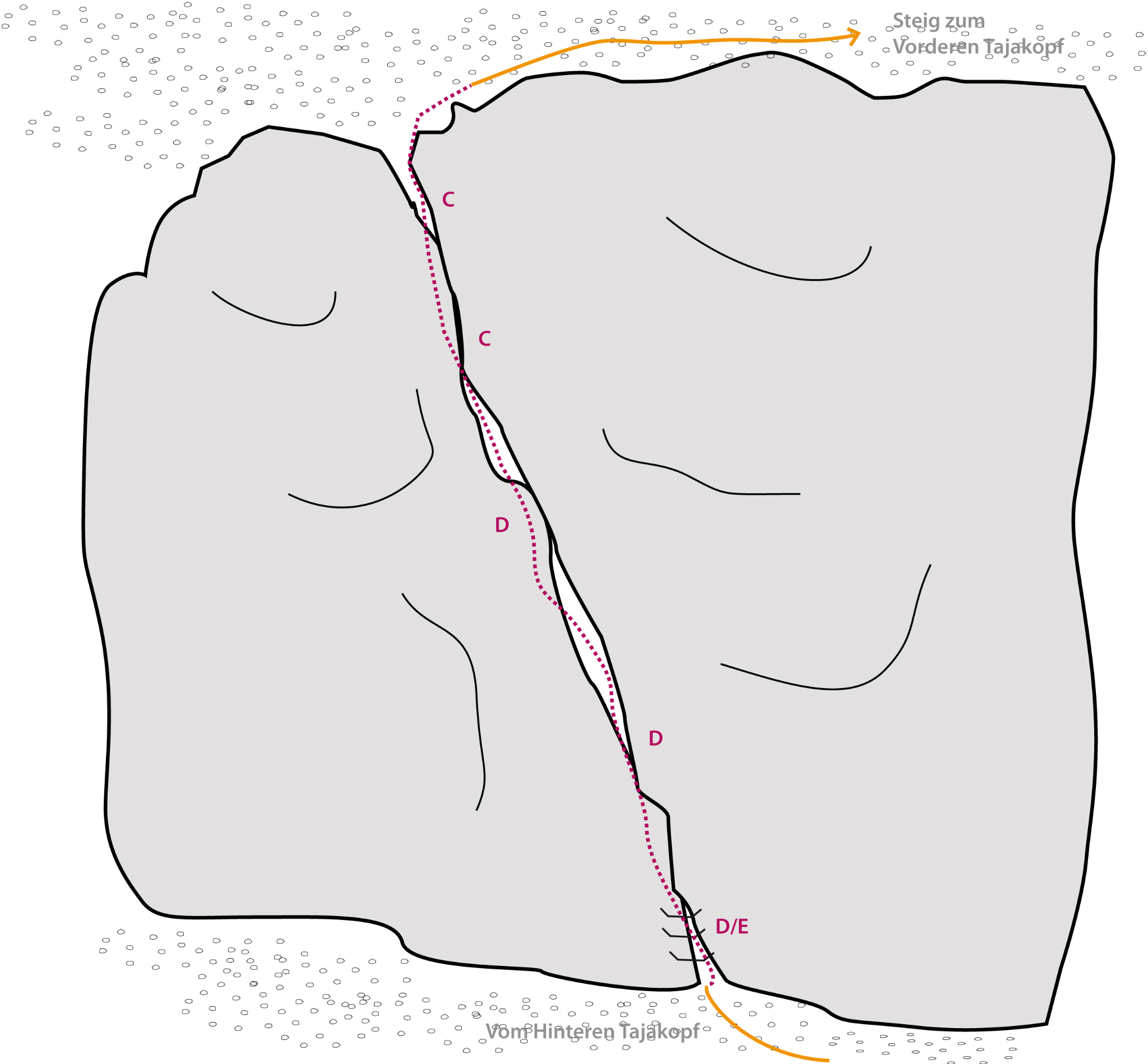 Ein kurzer Verbindungsklettersteig vom Vorderen Tajakopf zum Hinteren Tajakopf, der deshalb auch sehr gut mit dem Tajakante Klettersteig verbunden werden kann.