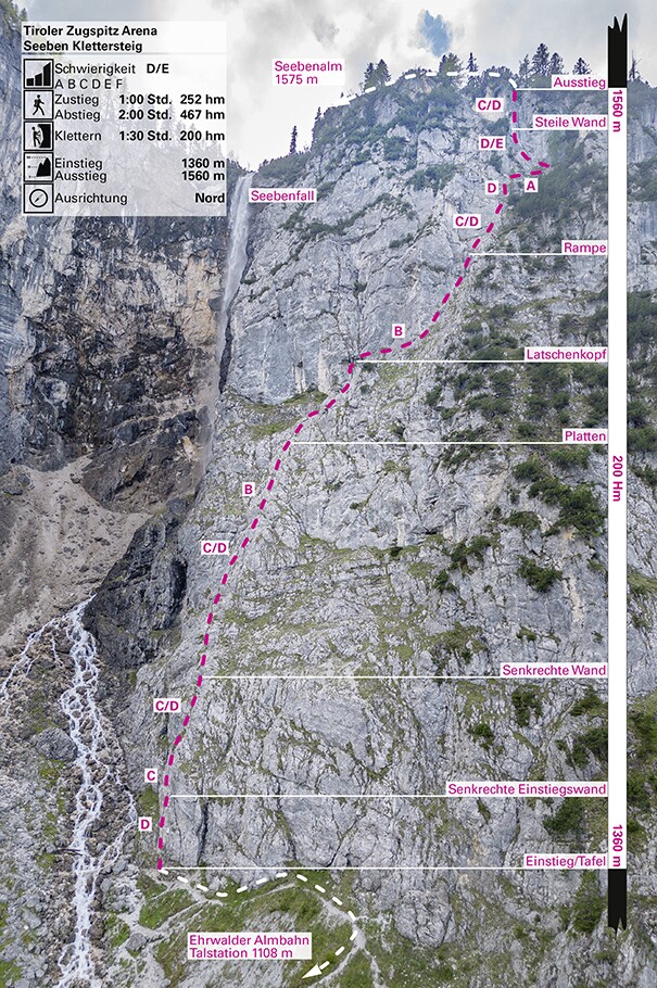 Der 'Seebener' kann auch als erste Sektion der Ehrwalder Klettersteig-Runde gelten.