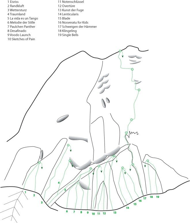 Einige der Sektoren haben Mehrseillängenrouten, welche hier gesondert angeführt werden.