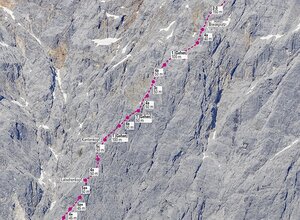 Route 5: Länge: 1065m, max. Schwierigkeit: 6b+
