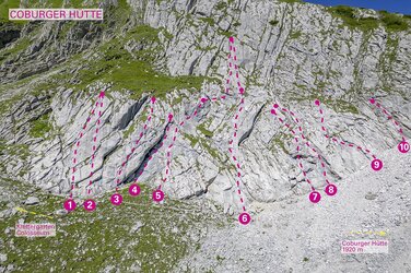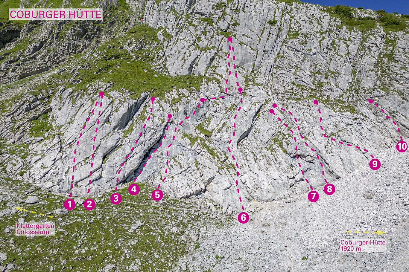 Kleiner aber sehr feiner Klettergarten in Hüttennähe. Bester Kalk aus dem Mieminger Gebirge. Griffig und rauh. Alle Routen sind mit Klebehaken (Verbund) abgesichert. Die Absicherung der Routen ist allerdings nicht homogen. Manche Routen sind schlecht abgesichert, auch gibt es keine Umlenkarabiner an den Standplätzen.