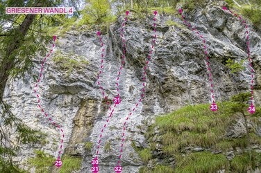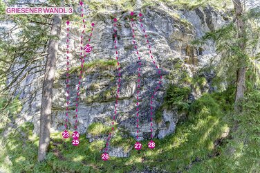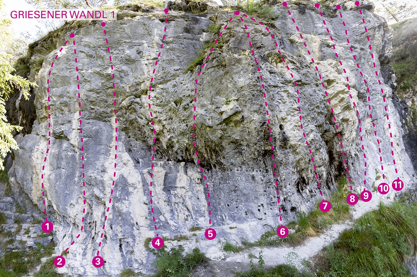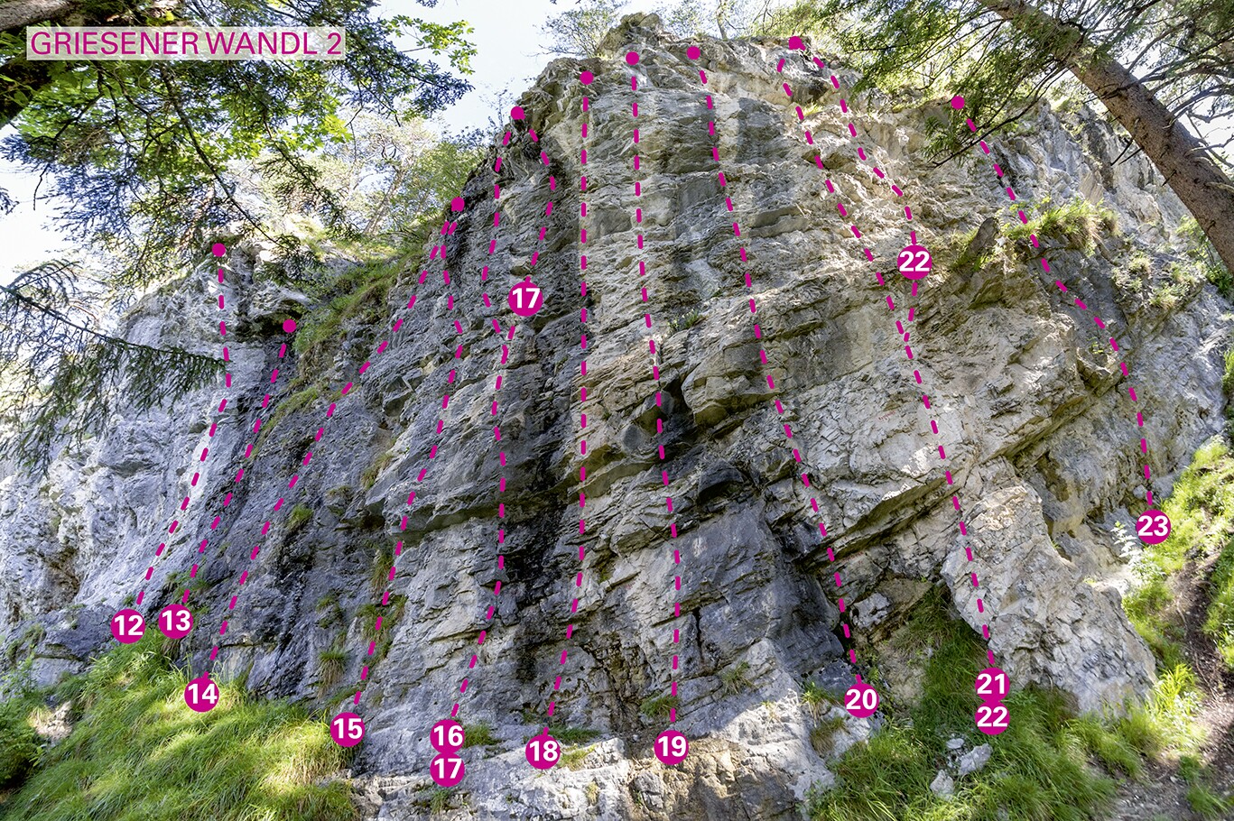 Relativ versteckter und somit auch ruhiger Klettergarten mitten im Wald. Ca. 100m oberhalb der kleinen Ortschaft Griesen. Der Klettergarten ist nach Osten ausgerichtet und im Sommer recht angenehm zu klettern. Die Routen sind bestens abgesichert und der Fels ist von guter Qualität.