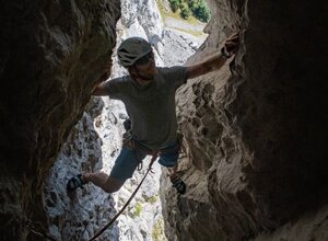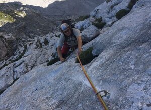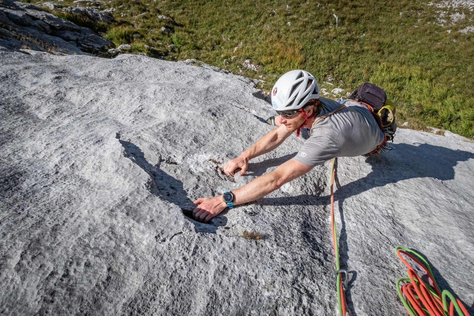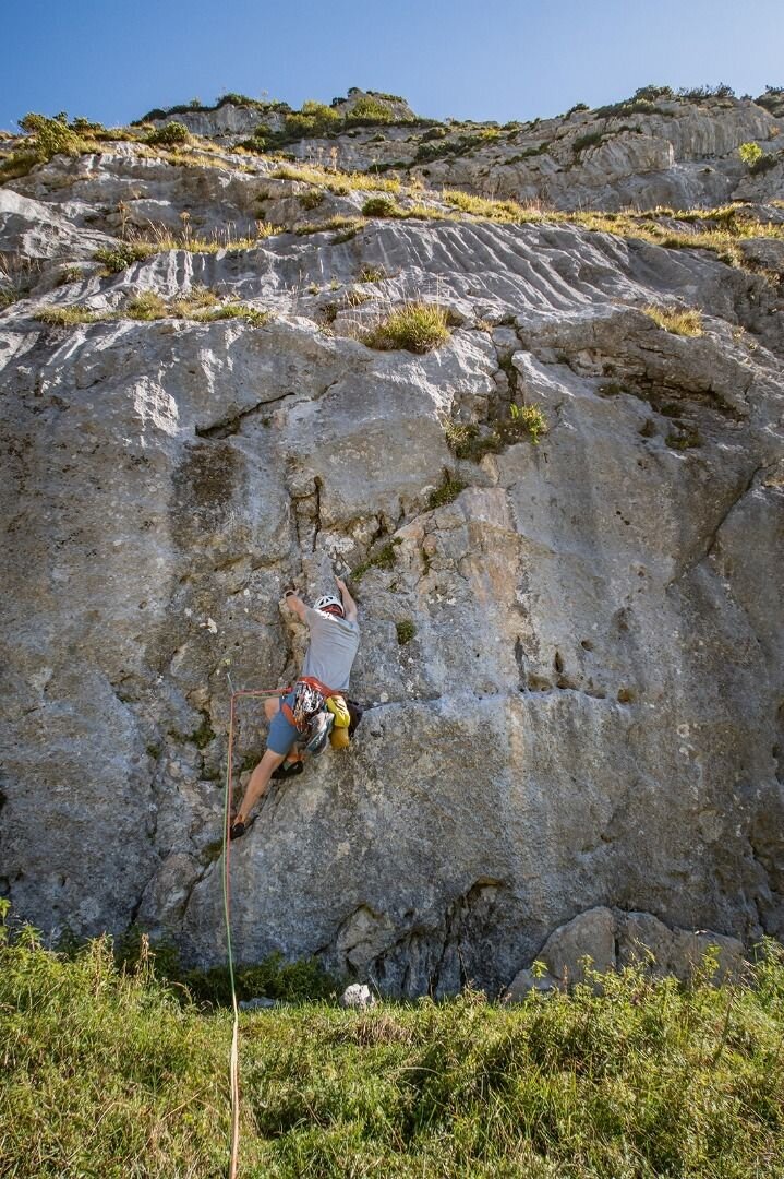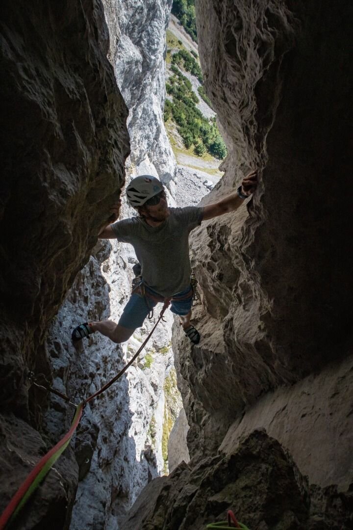 Herzstück ist der tiefe, schön zu kletternde Kamin durch den die Tour alpinen Charakter erhält.