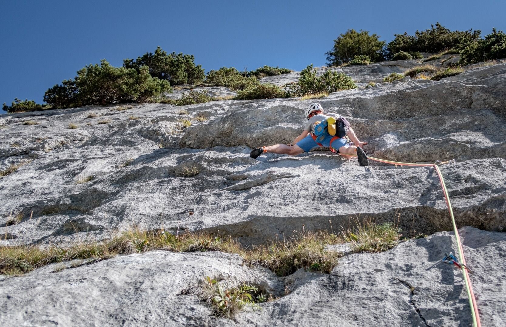 Der Treffauer Westwandsockel ist ein ideales Klettergebiet für kurze Tage speziell im Frühjahr und Herbst. Fantastische Ausblicke Richtung Süden belohnen den Zustieg.