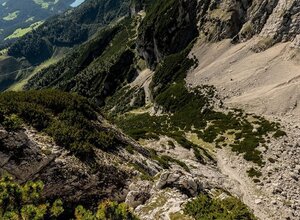 Abwechslungsreiche Plaisierroute an großteils kompaktem eher plattigem Fels, durchsetzt mit kurzen Schrofenpassagen und Gehgelände.