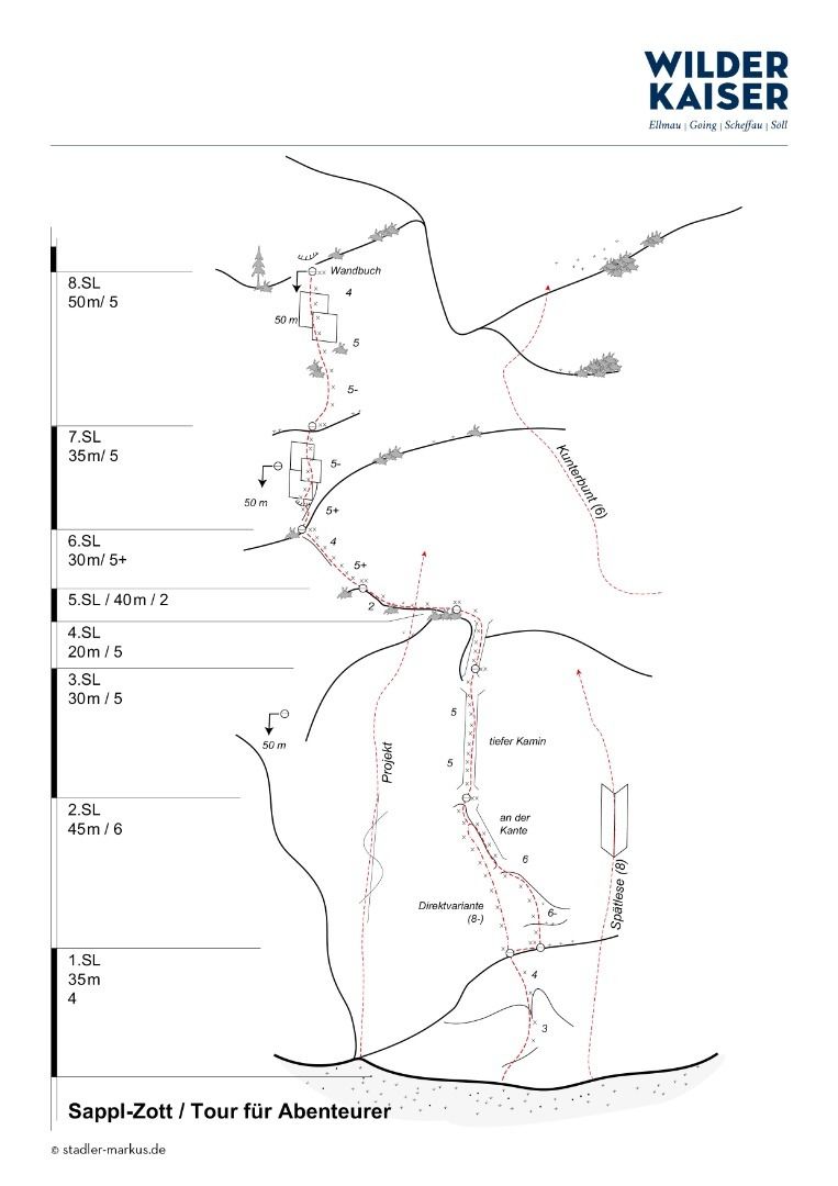 Hier fünf Beispieltouren - weitere Touren im Kletterführer "Alpin Wilder Kaiser" von Markus Stadler (3. Auflage Panico-Verlag 2021).