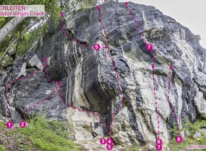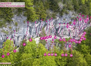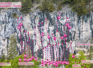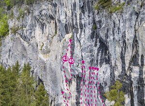 Über 190 Sportkletterouten, Schwierigkeitsgrad 3 bis 9a+.